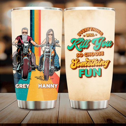 View full detailsPersonalized Bike Couple Tumbler - Gift Idea For Biker/ Couple - Everything Will Kill You So Choose Something Fun