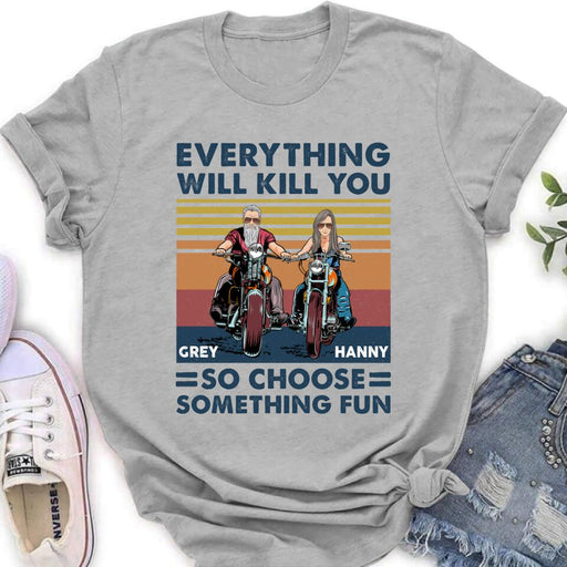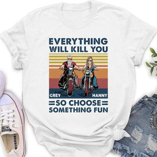 View full detailsPersonalized Bike Couple Shirt/ Hoodie - Gift Idea For Biker/ Couple - Everything Will Kill You So Choose Something Fun