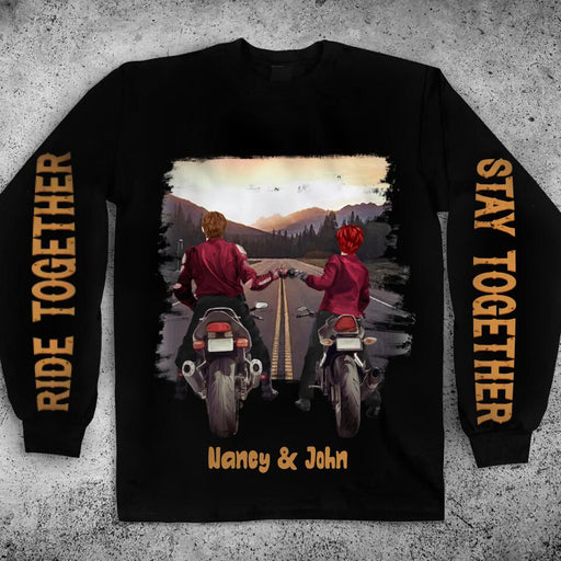 View full detailsPersonalized Biker Couple Long Sleeve Shirt - Gift Idea For Couple/Bikers - Ride Together Stay Together