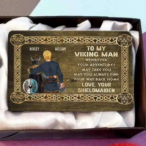 View full detailsCustom Personalized To My Viking Man Aluminum Wallet Card - Gift Idea For Couple/ Him - Love Your Shieldmaiden