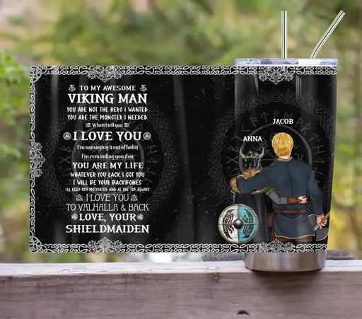View full detailsPersonalized Viking Couple Tumbler - Gift Idea For Couple/Him/Valentine's Day - To My Awesome Viking Man I love You To Valhalla & Back