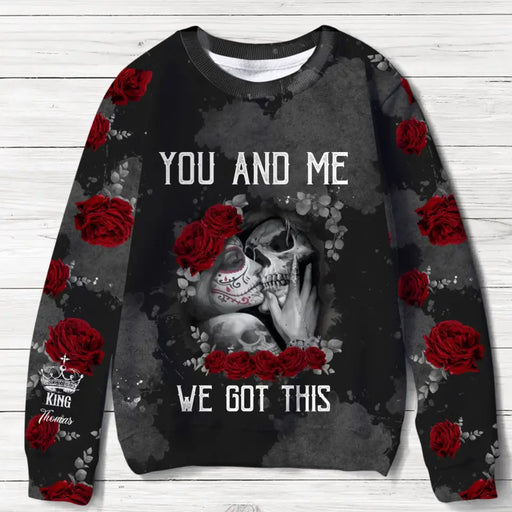 View full detailsPersonalized Skull Couple AOP Sweater - Christmas/Valentine's Day Gift Idea for Couple - You And Me We Got This