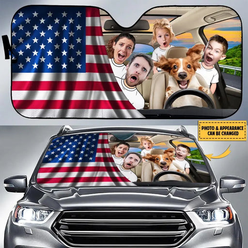 View full detailsPersonalized Photo Dog Driving Family Trip Auto Windshield Sunshade - Couple With Kids And Dog- Gift Idea For Family/Couple/Dog Lover