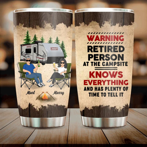 View full detailsCustom Personalized Retired Couple Tumbler - Gift Idea For The Retired/Mother's Day/Father's Day - Warning Retired Person At The Campsite Knows Everything