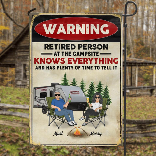 View full detailsCustom Personalized Retired Couple Flag Sign - Gift Idea For The Retired/Mother's Day/Father's Day - Warning Retired Person At The Campsite Knows Everything