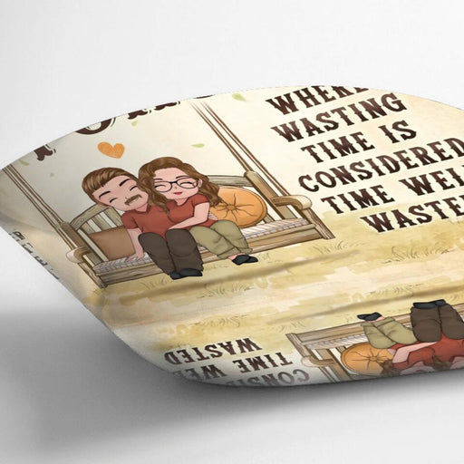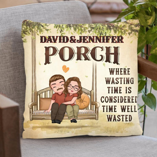 View full detailsCustom Personalized Porch Couple Pillow Cover - Gift For Couple - Where Wasting Time Is Considered Time Well Wasted