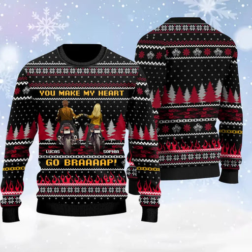 View full detailsCustom Personalized Motorcycle Couple AOP Sweater - Gift Idea For Couple/ Motorbike Lovers - You Make My Heart Go Braaaap