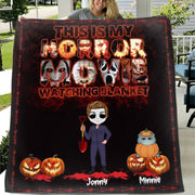 Personalized Horror Movie Quilt/Fleece Blanket - Up to 4 People And 6 Pets - Halloween Gift Idea For Cat/Dog Lovers/Couple/Friends - This Is My Horror Movie Watching Blanket