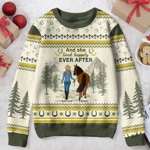 View full detailsPersonalized Horse Girl Sweater - Christmas Gift Idea For Horse Lover - Up to 6 Horses - And She Lived Happily Ever After
