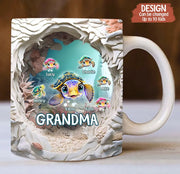 Personalized Grandma With Kids Turtle 3D Effect Coffee Mug - Gift Idea For Grandma/Mom/Mother's Day - Up to 10 Kids