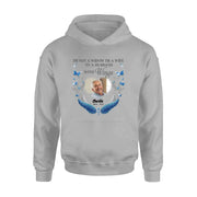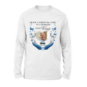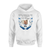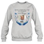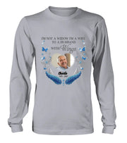 Personalized Memorial Photo Shirt/Hoodie - Memorial Gift Idea for Mother's Day/Father's Day - I Am Not A Widow I'm A Wife To A Husband With Wings