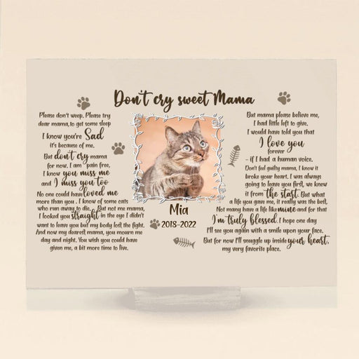 View full detailsPersonalized Pet Custom Photo Acrylic Plaque - Memorial Gift For Cat/Dog Mom - Don't Cry Sweet Mama
