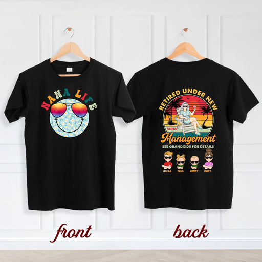 View full detailsPersonalized Nana's Life Shirt - Summer Vacation Gift Idea For Grandma - Up to 4 Kids - Retired Under New Management