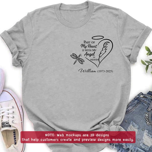 View full detailsPersonalized Memorial Embroidered T-Shirt/Sweater/Hoodie - Memorial Gift Idea - Part Of My Heart Is With My Angel In Heaven