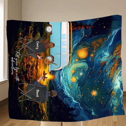 Personalized Camping Couple Family Quilt Blanket/Fleece Throw Blanket - Gift for whole family, camping lovers - Fill Your Life With Adventures