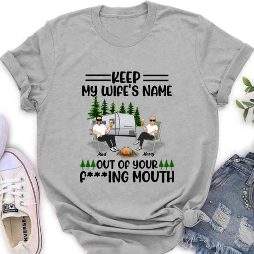 Personalized Camping Couple Shirt/Pullover Hoodie - Gift Idea For Camping Lover - Keep My Wife's Name Out Of Your Mouth