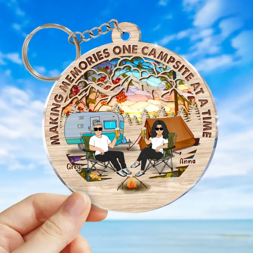 View full detailsPersonalized Camping Couple Suncatcher Acrylic Keychain - Gift Idea For Camping/Dog/Cat Lover - Up to 4 Pets - Making Memories One Campsite At A Time