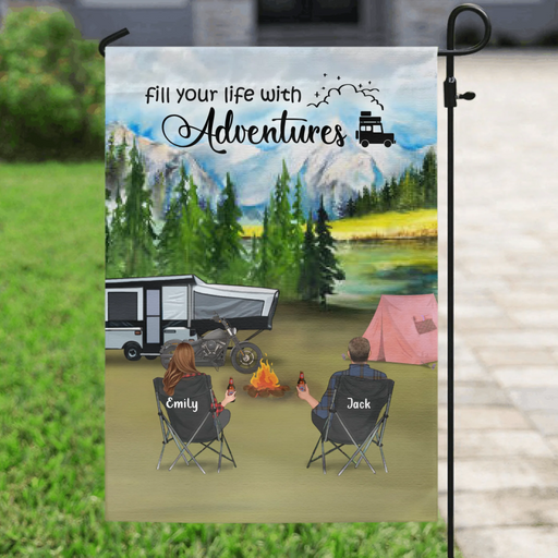 View full detailsPersonalized Camping Garden Flag - Couple with up to 5 Pets - Best Gift For Couple, Camping Lovers - Fill Your Life With Adventures
