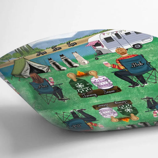 Personalized Camping Pillow Cover - Couple With Kid and Up to 5 Pets - Best Gift For Couple, Camping Lovers - Camping Partners For Life
