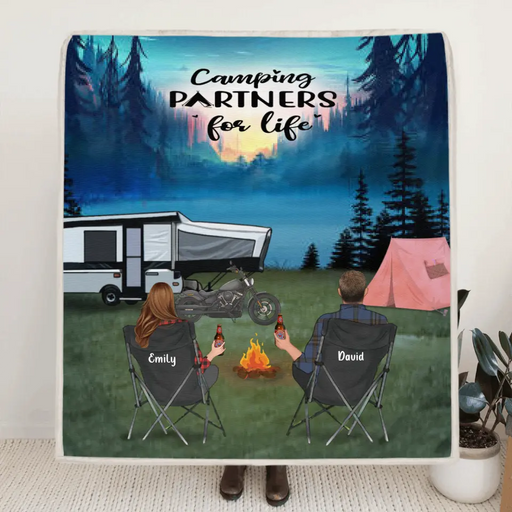 View full detailsPersonalized Camping Quilt/Fleece Blanket - Couple/Parents With Up to 4 Kids And 3 Pets - Camping Partners For Life