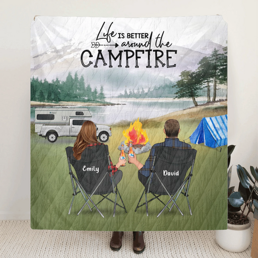 View full detailsPersonalized Camping Quilt Blanket - Couple Up to 3 Dogs - Gift For Couple - Life Is Better Around The Campfire - OFAWC7