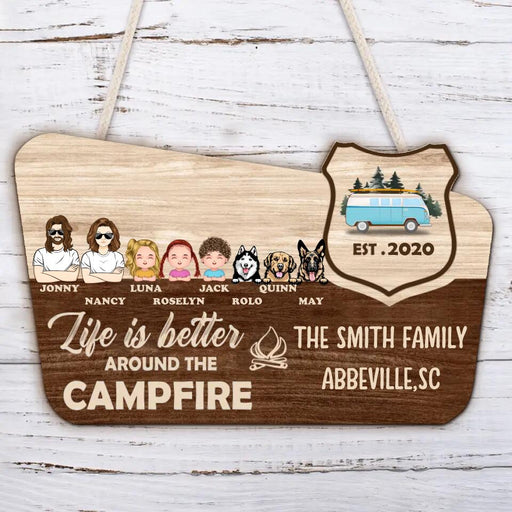 View full detailsPersonalized Camping Wooden Sign - Gift Idea For Couple/Family/Camping Lover - Couple With Up to 3 Kids And 3 Pets - Life Is Better Around The Campfire