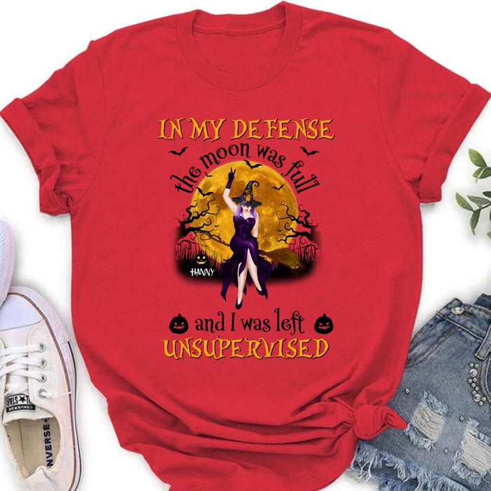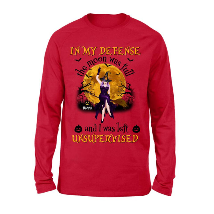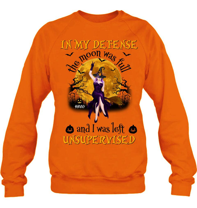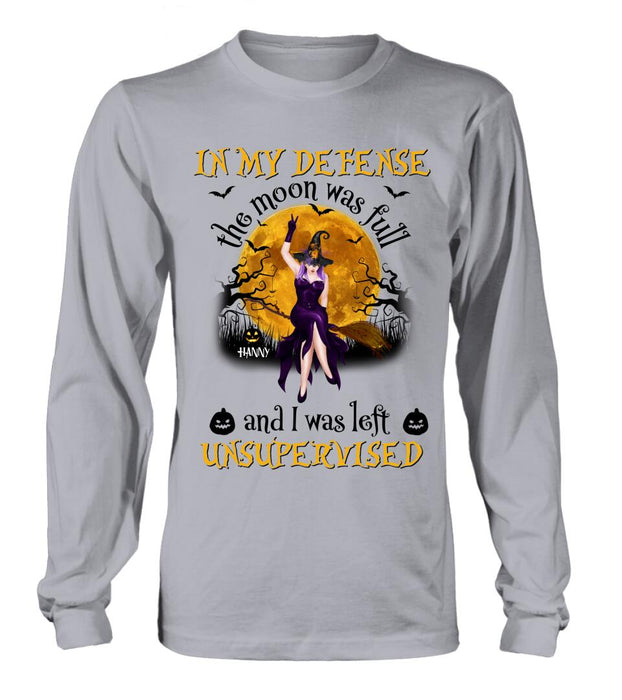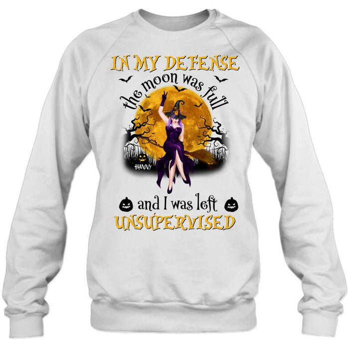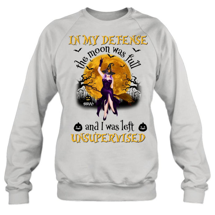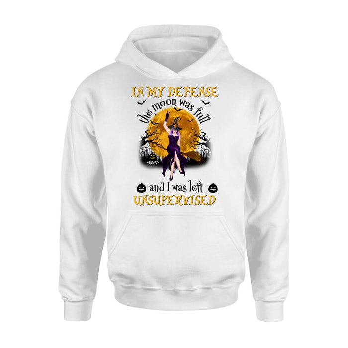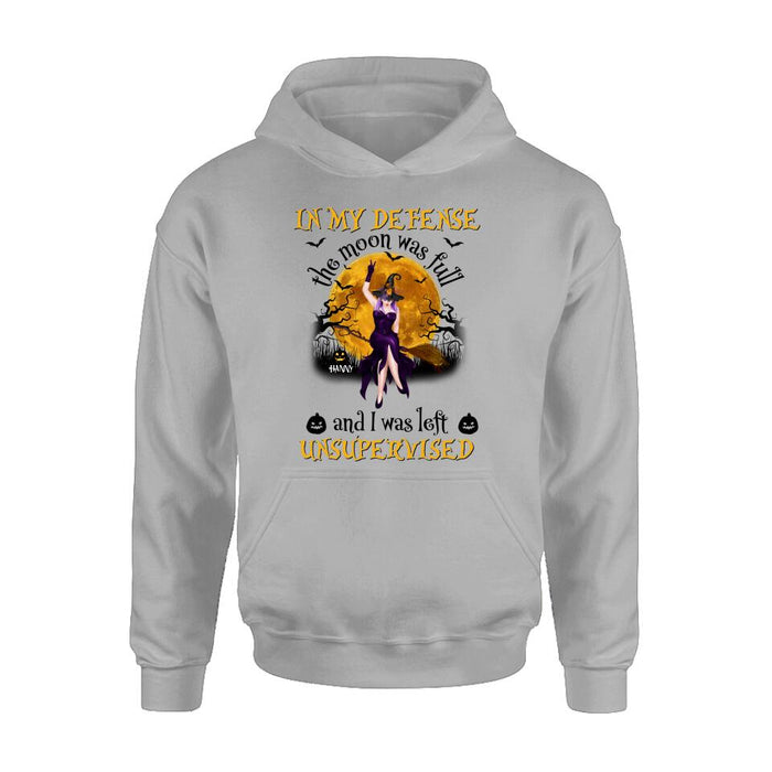 Custom Personalized Witch Moon Shirt/ Hoodie - Gift Idea For Halloween - In My Defense The Moon Was Full And I Was Left Unsupervised
