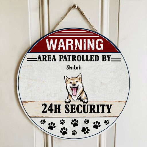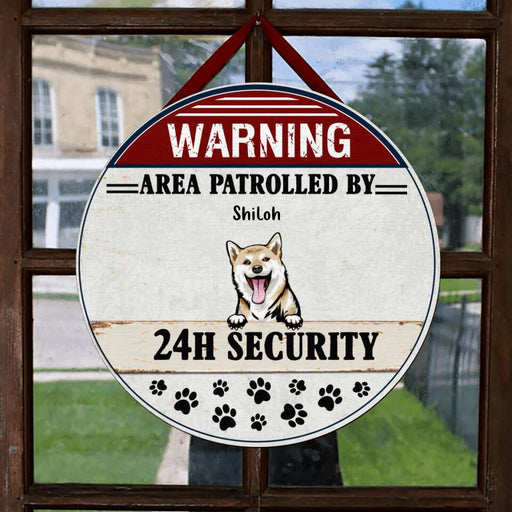 View full detailsCustom Personalized Warning Dog Circle Wooden Sign - Gift Idea For Dog Lovers - Up To 5 Dogs - Warning Area Patrolled By 24h Security