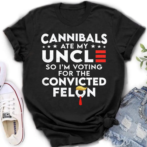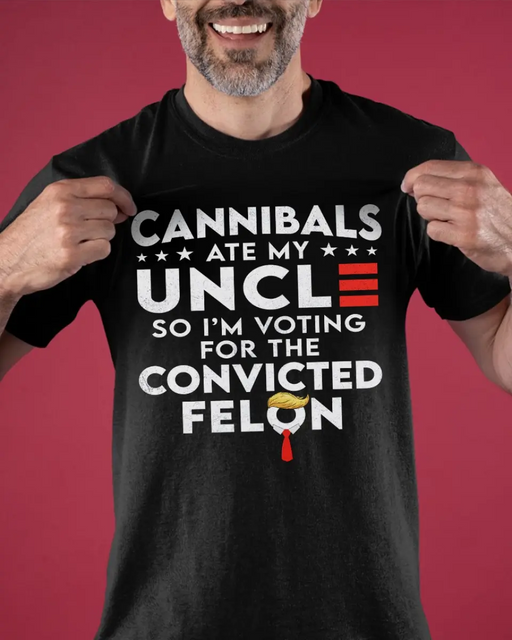 View full detailsCannibals Ate My Uncle So I'm Voting For The Convicted Felon T-Shirt/ Long Sleeve/ Sweatshirt/ Hoodie