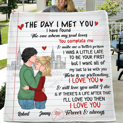 View full detailsPersonalized Couple Quilt/Fleece Throw Blanket/Pillow Cover - Mother's Day Gift For Wife From Husband - The Day I Met You