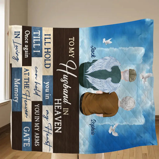 View full detailsPersonalized Couple Quilt/Fleece Throw Blanket - Memorial Gift Idea For Couple - To My Husband In Heaven I'll Hold You In My Heart