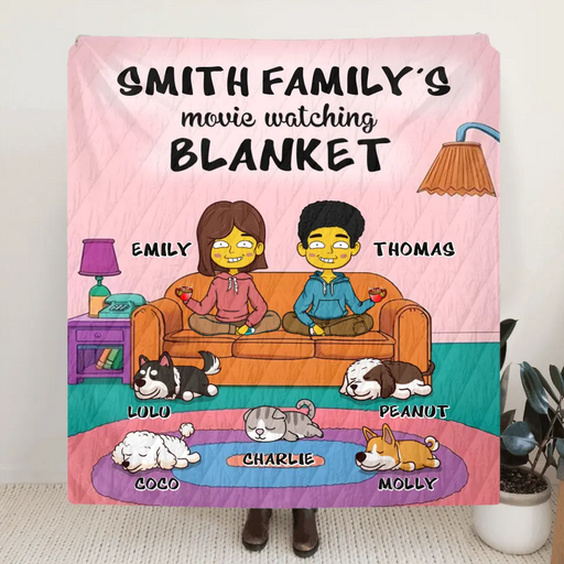View full detailsPersonalized Couple Quilt/Fleece Blanket - Up to 5 Pets - Valentine Gift For Couple/Dog/Cat Lovers - Movie Watching Blanket
