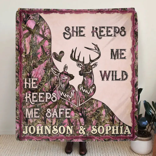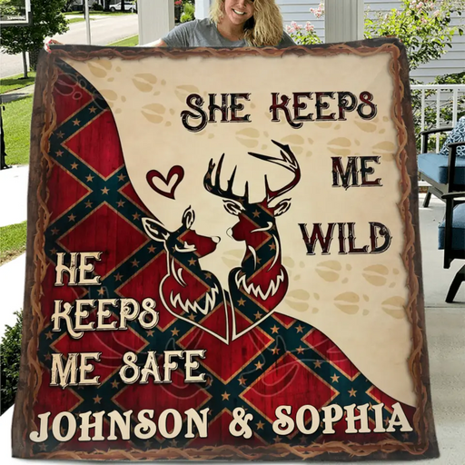 View full detailsPersonalized Couple Quilt/Fleece Throw Blanket - Gift Idea For Couple/Anniversary Gift - He Keeps Me Safe She Keeps Me Wild