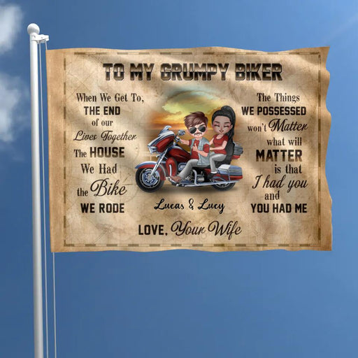 View full detailsPersonalized Couple Riding Flag Sign - Gift To Couple/Gift To Husband From Wife - To My Grumpy Biker