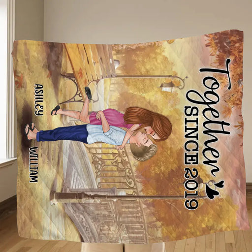 Personalized Couple Quilt/Single Layer Fleece Blanket - Wedding/Anniversary Gift Idea for Couple - Together Since 2019