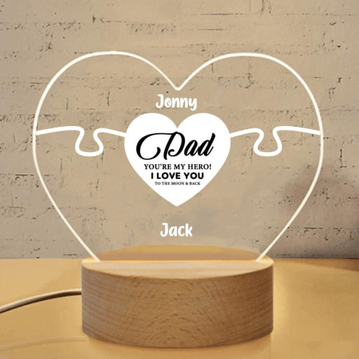 View full detailsPersonalized Father Heart-Shaped Acrylic Photo Panel with Light Base - Up to 7 People - Gift Idea for Father's Day - You're My Hero
