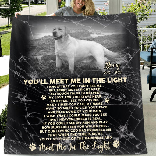 View full detailsCustom Dog Photo Memorial Fleece Throw Blanket/Quilt - Memorial Gift Idea For Dog Lovers/Dog Owners - You'll Meet Me In The Light
