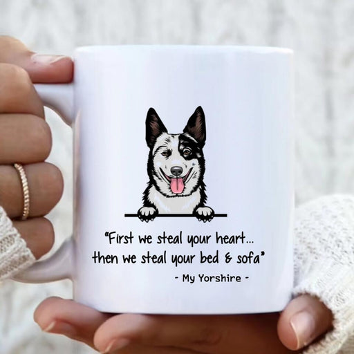 View full detailsCustom Dog Coffee Mug, Best Gift For Dog Mom Dad, Dog Lovers - First We Steal Your Heart...Then We Steal Your Bed & Sofa