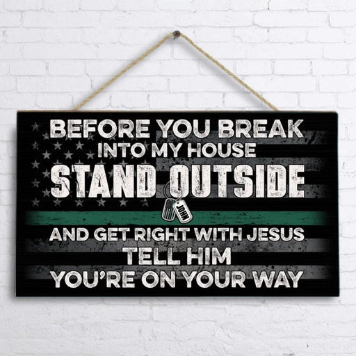 View full detailsPersonalized Rectangle Wooden Sign - Best Gift Idea For Home Decor - Before You Break Into My House Stand Outside And Get Right With Jesus
