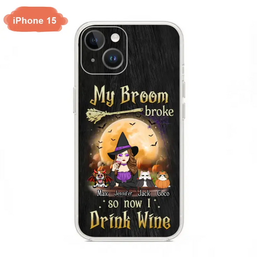 View full detailsPersonalized Witch Pet Mom Phone Case - Upto 3 Pets - Halloween Gift For Cat/Dog Mom - My Broom Broke So Now I Drink Wine - Cases For iPhone/Samsung
