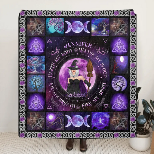 View full detailsPersonalized Witch Quilt/Fleece Throw Blanket - Gift Idea For Witch Lover - Earth My Body Water My Blood Air My Breath Fire My Spirit