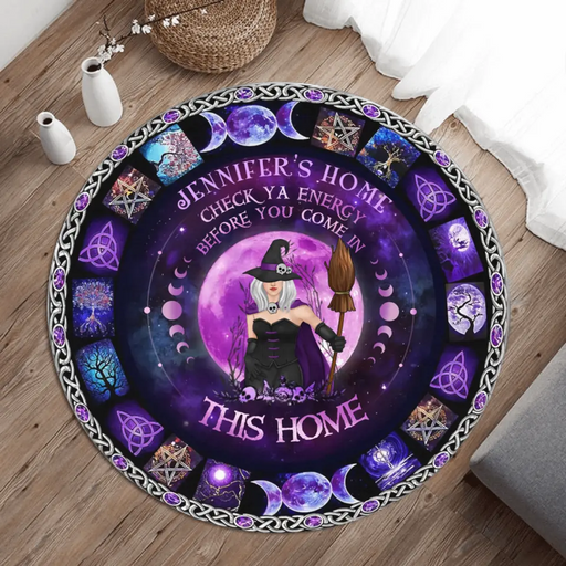 View full detailsPersonalized Witch Round Rug - Gift Idea For Halloween/Wicca Decor/Pagan Decor - Check Ya Energy Before You Come In This Home