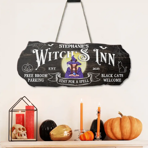 View full detailsPersonalized Witch Wooden Sign - Gift Idea For Halloween/ Witch/ Pagan/ Wicca Decor - Witch's Inn Free Broom Parking and Black Cats Welcome
