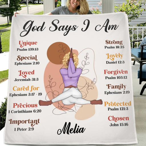 View full detailsPersonalized Yoga Girl Fleece Throw Blanket/Quilt/Pillow Cover - Gift Idea For Yoga Lovers - God Says I am