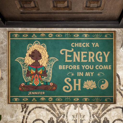 View full detailsPersonalized Yoga Doormat - Check Ya Energy Before You Come In My Sh*t - Gift Idea For Friend/ Birthday/ Yoga Lover