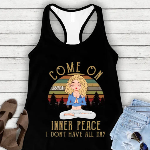 View full detailsPersonalized Yoga AOP Women's Racerback Tank Top - Gift Idea For Yoga Lovers/ Friends/ Birthday - Come On Inner Peace I Don't Have All Day
