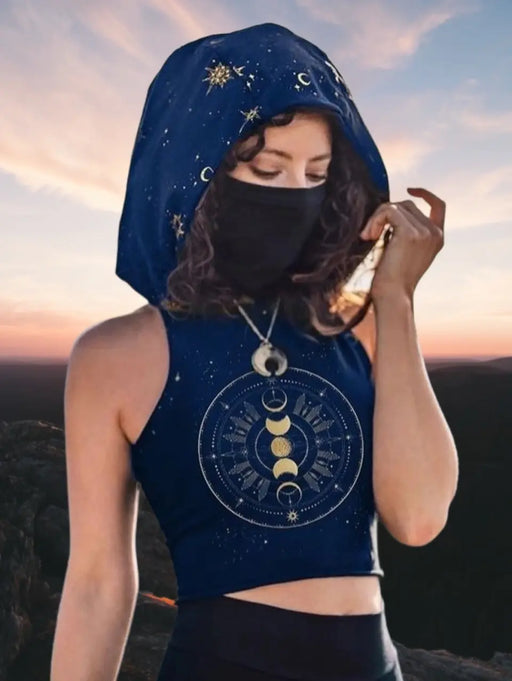 Sleeveless Turtleneck Tank Top With Hood - Birthday Gift Idea