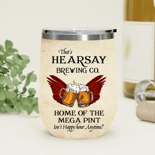 View full detailsWine Tumbler - That's Hearsay Brewing Co. Home Of The Mega Pint Isn't Happy Hour Anytime ?