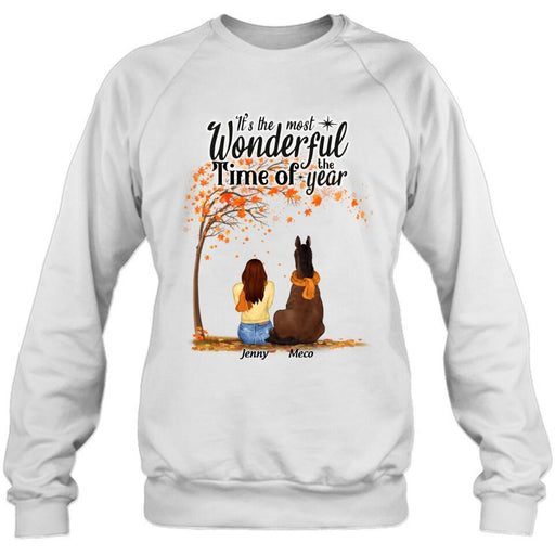 View full detailsPersonalized Horse Mom In Autumn T-shirt - Girl With Up to 2 Horses - Gift For Horse Lover - It's The Most Wonderful Time Of The Year