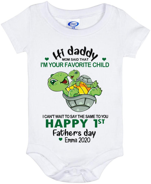 View full detailsPersonalized turtle baby jumpsuit - Hi daddy mom said that I'm your favorite child - Best gift for father's day